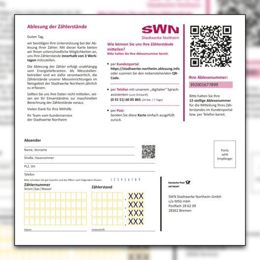Sie haben eine Mitteilungskarte erhalten, da ein Mitarbeitender der Stadtwerke Northeim oder der Beauftragte unseres Ablesedienstleisters, der Metering Service Gesellschaft mbH (MSG), Sie nicht angetroffen hat?